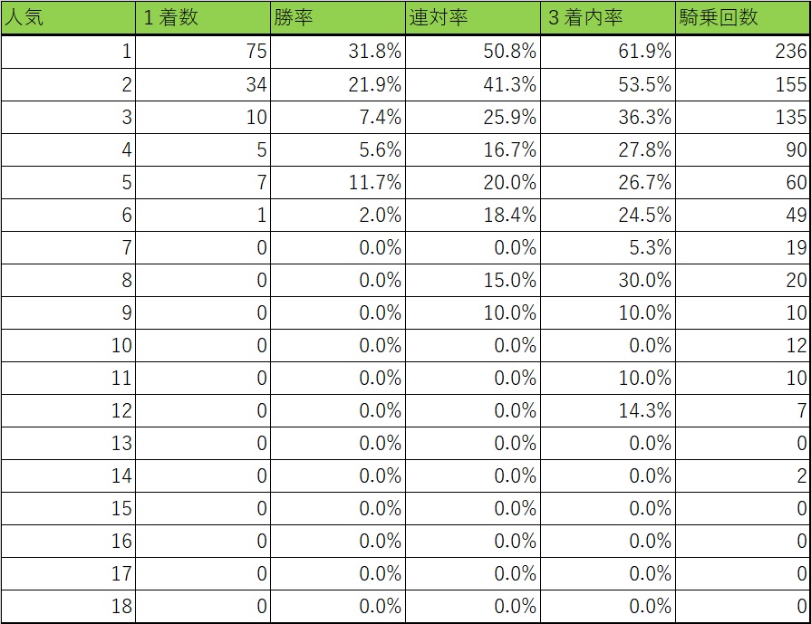 | 新潟芝2400 | 0 | 0.0% | 0.0% | 50.0% | 2 |